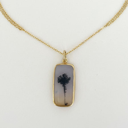 18k Gold Dendritic Agate Charm