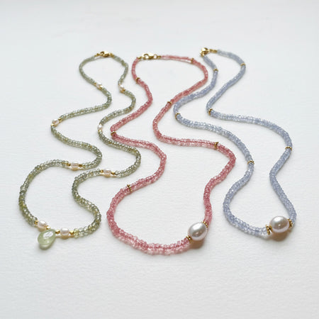Freya Necklace with Pink Sapphires and Grey Pearls